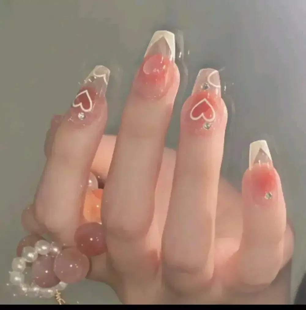 • 빠른배송! 하트 핑크 프랑스 네일팁