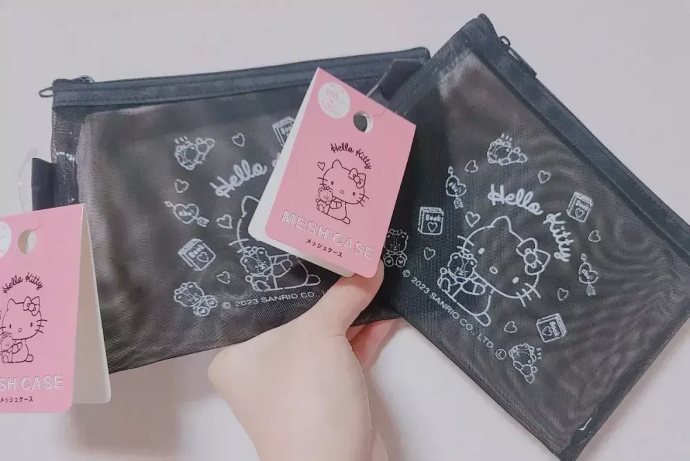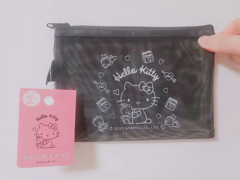 일본 산리오 키티 매쉬 파우치 블랙 파우치 화장품 케이스 (재고 3개) > 뷰티