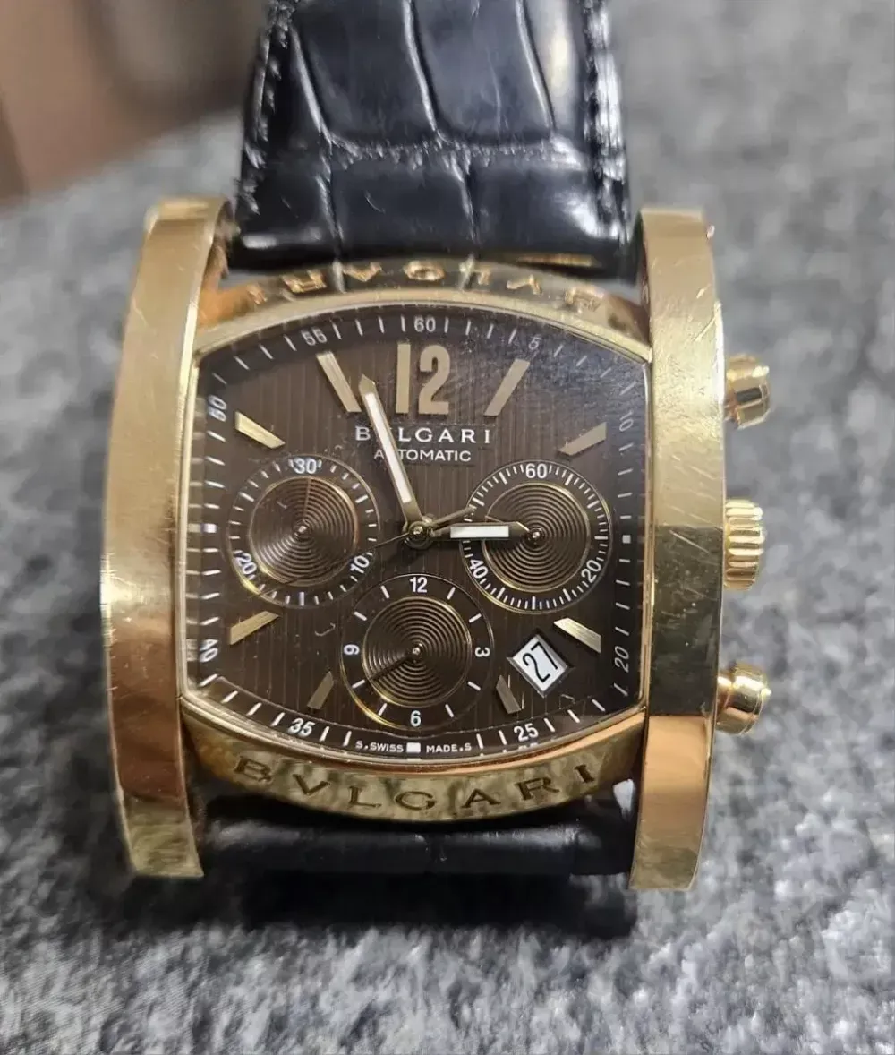 안녕하세요... 이번 소개할 제품은 불가리 남성용 금통 시계입니다.. 2010년에 구매한 제품이며 당시에 판매가는 2850정도로 알고있습니다. 모델명은 불가리 아시오마 크로노 48mm 로즈골드 한정판 모델 입니다.. 99개 한정판 모델중 16번째 모델이며 시계 전체와 버클부분 모두 로즈골드로 금만 35돈 이상으로 알고있습니다... 세월에비해 그래도 깨끗한 편입니다...(생각에 차이는 있을수있겠죠) 고가의 제품인만큼 감정할수있는 곳에서 거래를 직접하셔도 됩니다.. 흔치않은 모델인만큼 소장가지도 있다고 생각합니다. 현재 시계줄은 맞춤제작한 것이고 여분으로 브라운 색상도 같이 주문했는데 브라운 색상은 한번도 사용하지않아 새것입니다..원래 본제품 줄도 가지고있으나 낡은것같아 보관하고 있습니다.. 제작할경우 필요할듯해서요... 현재 필웨이 중고명품샵에 위탁도 부탁한 상태입니다... www.feelway.com/m/m_view_goods.php?g_no=7025703033 많은 관심 부탁드립니다.. 정말 신중하게 생각하시고 구매하실분만 연락주시면 가격은 왠만하면 시원하게 절충해드릴께요...
