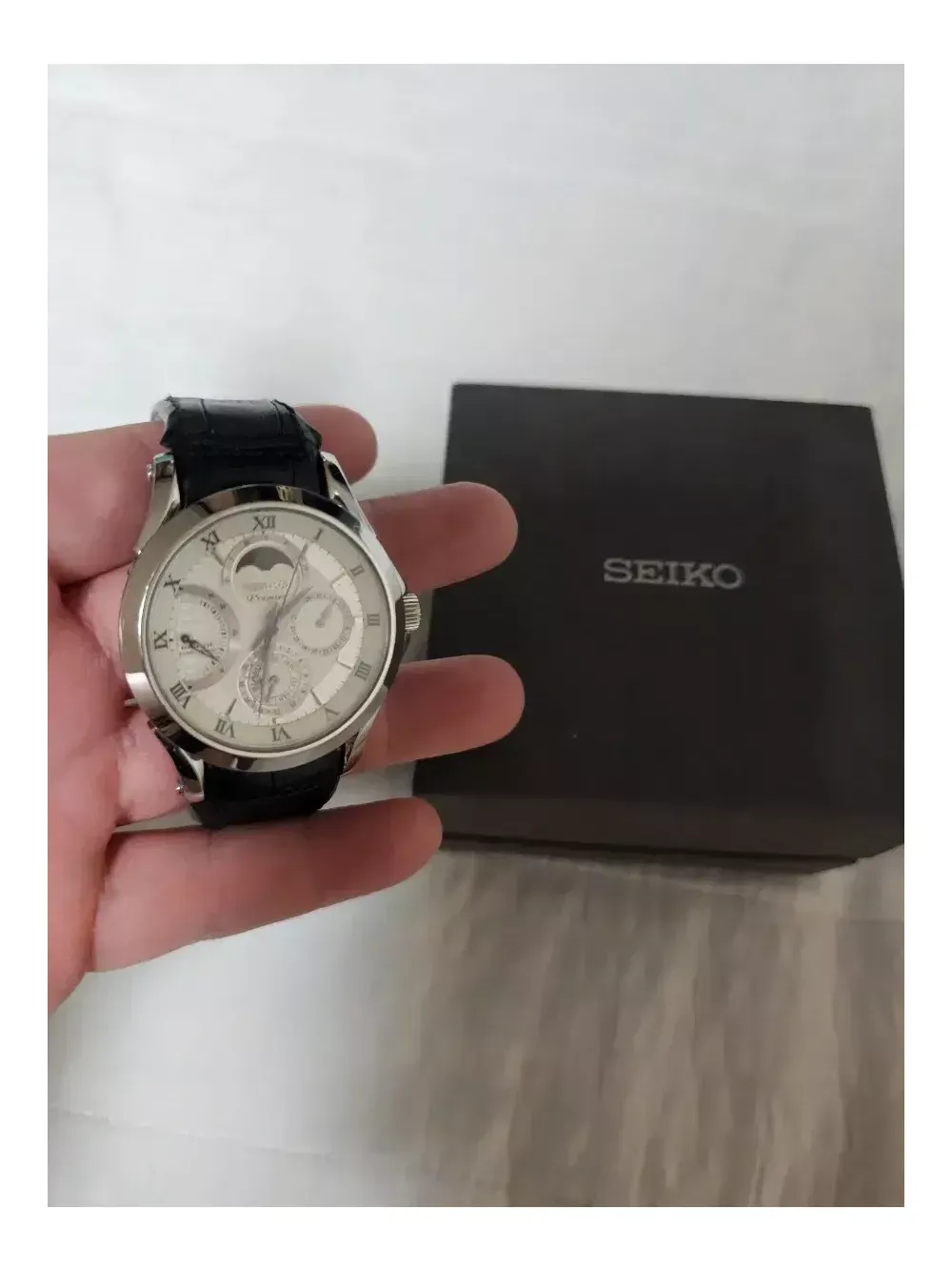 첫월급으로샀던 면세점 세이코프리미엄 문페이즈입니다 적당한가격에 오토매틱사용해보세요 롯데면세점 구입당시 110정도줬습니다 2010년도정도구매 작동잘됩니다 네고 환불x 교신 x