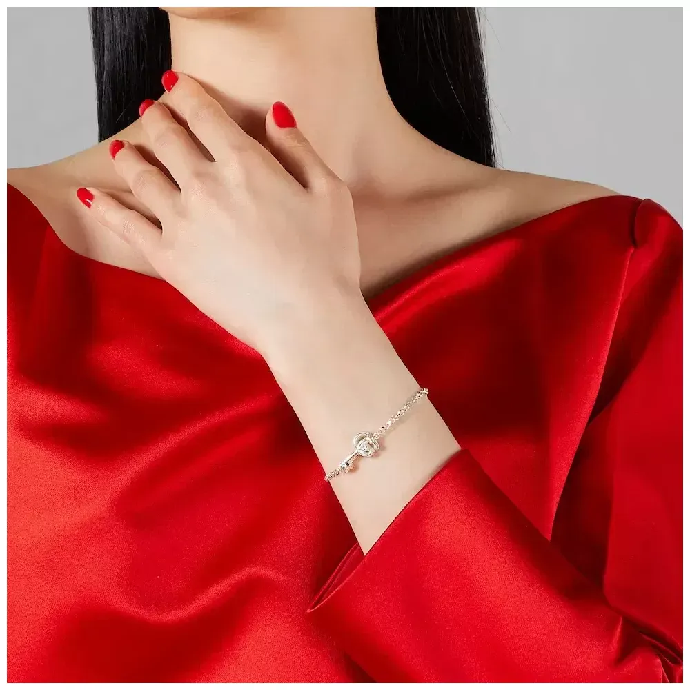 구찌 925스털링 실버 GG 마몽 키 참 팔찌로 새상품입니다. 열어서 상품 확인 밖에 하지 않았습니다. 너무 비슷한 팔찌를 선물받아서 이건 내놓습니다. 2024년 7월 초 구입한 상품입니다. 여름에 포인트 팔찌로 그만이네요.