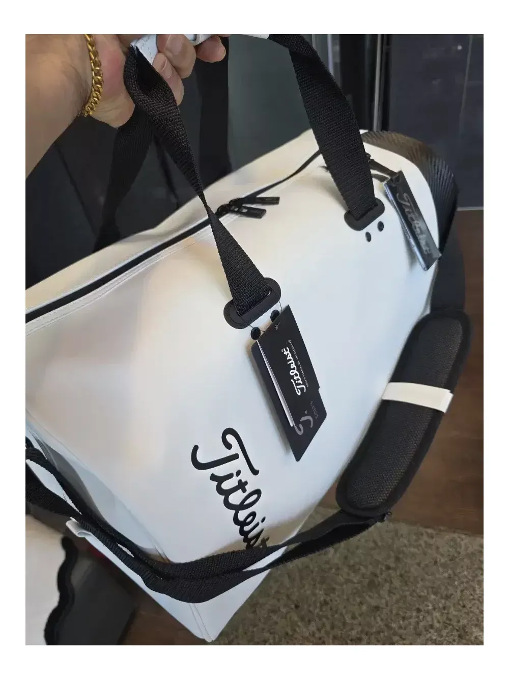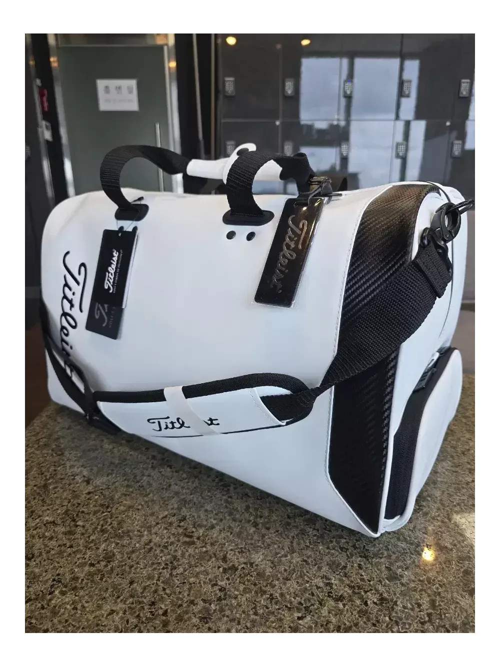 타이틀리스트 코어에센셜 보스턴백 TA22CEBBK. 화이트색상 병행수입 일본정품. 텍 제거상태 타이틀리스트 세계에서 가장 많이 팔린 보스턴, 코어에센셜 24년 신형입니다. 최저가이며, 온라인에서 이 가격 이하로 판매하는 상품은 대부분 가품입니다. 정품은 중량 50KG 바벨테스트 기준을 통과해 내구성에서 가품과는 큰 차이가 있습니다. 크기 : W49 × D25 × H30.5cm 소재 : PU레더 품번 : TA22CEBBK 안전결제하세요. 질문에 답변하지 않습니다. 내부 망사포켓2구, 지퍼포켓 1구로 구성돼 있습니다. 측면 골프화 포켓 당연히 있습니다.