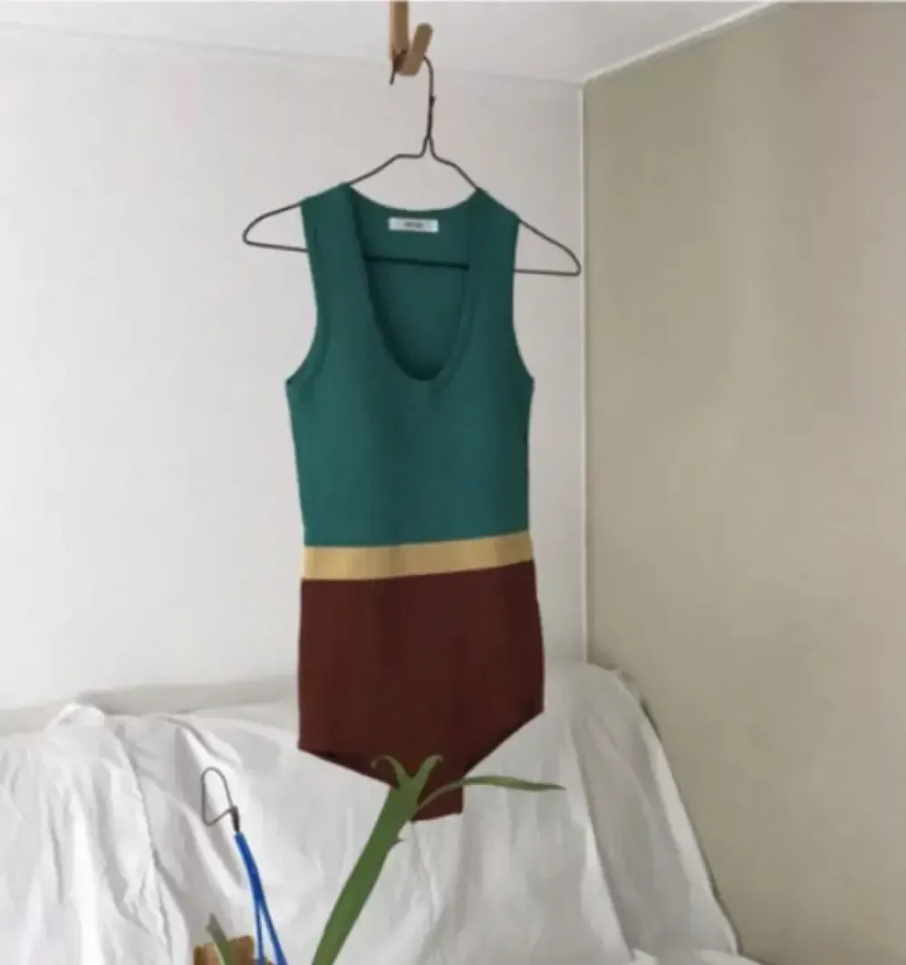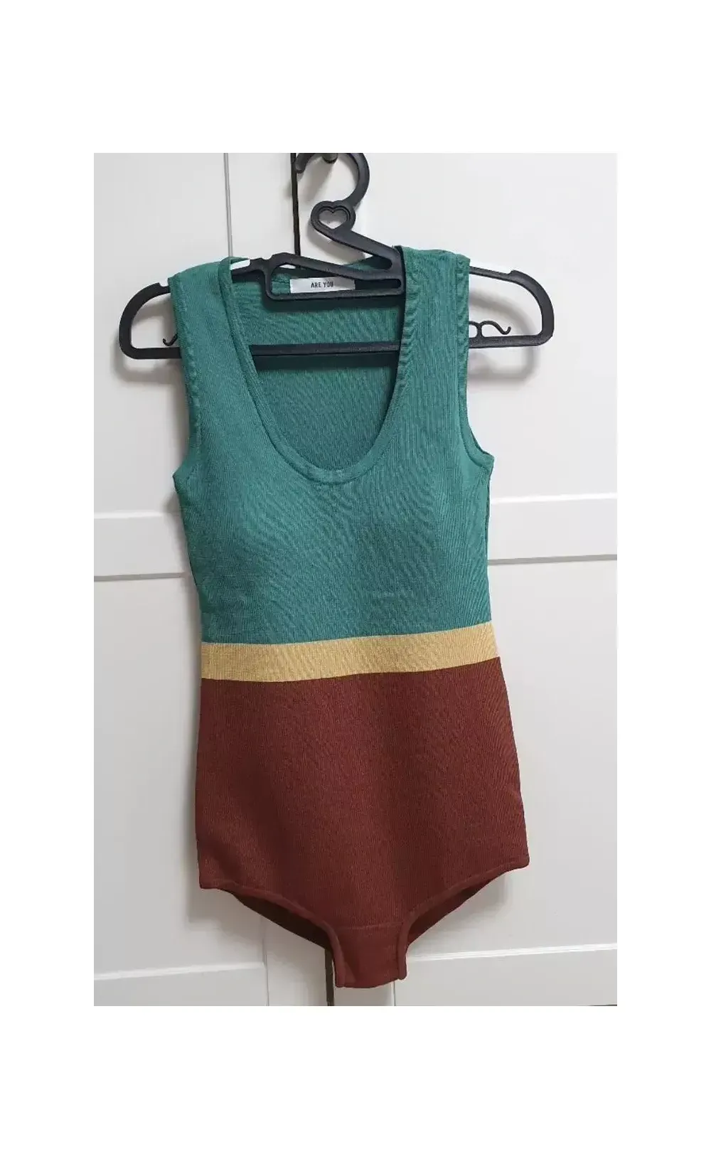 새것/ 배색 니트 모노키니 (그린+와인) 요약정보 및 구매