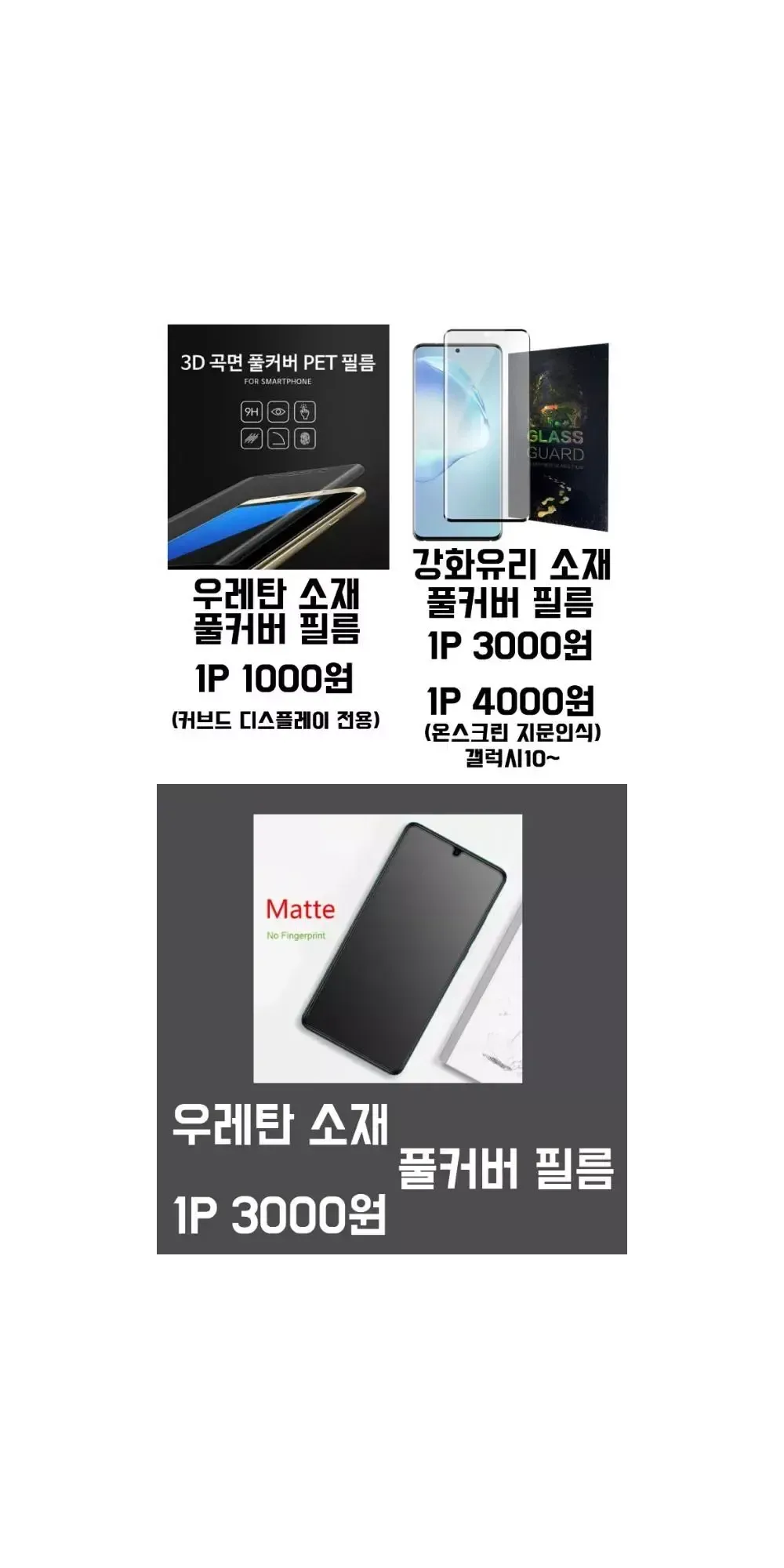 ✔️배송비 변경 및 기타 문의사항은 채팅 부탁드립니다. ✔️배송비 우편 900~원 / 준등기 2000원 / GS25반값택배 2100원 / 일반택배 3000~원(제주산간+3) ?1만원 이상 *첫*구매 시 GS반값택배 ●1500원● ?1만원 이상 *재*구매 시 GS반값택배 ●1800원● ?1만원 이상 구매 시 *우편* 무료배송 [ 유리필름 배송 불가X] ?3만원 이상 구매 시 *일반택배* 무료배송 ▪︎모든 유리 필름은 파손위험으로 택배배송만 가능합니다▪︎ ⬇️ㅡㅡㅡㅡ휴대폰케이스ㅡㅡㅡ⬇️ 0.매머드 맥세이프 케이스(4500원)●(변색방지) 1.불사 매머드 케이스(1800원)● 2.불사 매머드 카드 케이스(2900원)●(변색방지) 3.불사 매머드 하드 케이스(3900원)●(변색방지) 4.불사 카메라 풀커버 케이스(3500원)●(변색방지) ⬇️ㅡㅡㅡㅡ전면 필름ㅡㅡㅡㅡ⬇️ 5.방탄 우레탄 풀커버 필름(1000원) 6.방탄 강화유리 풀커버 필름(3000원) 6.방탄 온스크린 지문인식 호환 강화유리 풀커버 필름(4000원) 6-2.지문 방지 우레탄 풀커버 필름(3000원) ⬇️ㅡㅡㅡㅡ카메라필름/후면필름ㅡㅡㅡㅡ⬇️ 7.아이폰 강화유리 카메라 보호필름(1900~2500원) 8.갤럭시 강화유리 카메라 보호필름(1900원) 9.갤럭시/아이폰 후면 기스방지 우레탄 필름(1000원) 10.아이폰 후면 강화유리 필름(2500원) 11.아이폰12~14시리즈 후면/측면 기스방지필름(2000원/1500원) ⬇️ㅡㅡㅡㅡ기타 악세사리/충전ㅡㅡㅡㅡ⬇️ 12.아이폰 홈버튼 필름(지문인식가능)(1000원) 13.에어팟 실리콘 케이스/18K철가루방지 스티커(1500원) 14.10W 8핀/C타입 고속충전케이블(2000원) 15.10.5W 8핀/C타입 고속충전기(3900원) 16.25W CtoC 고속충전케이블(2500원) 17.C타입 3.0퀵차쳐 고속충전기(5900원) 18.3in1 고속충전 케이블(3900원) 18.8핀/C타입 이어폰 변환 젠더(3900원) 19.충전 케이블 변환젠더(500원) 20.스마트톡(1300원) ⬇️ㅡㅡㅡㅡ아이패드/애플워치ㅡㅡㅡㅡ⬇️ A.아이패드 투명 범퍼 젤리 케이스 (5000~6000원) B.아이패드 전면 강화유리 필름 (6000~7000원) C.애플워치 투명 젤리 케이스(2500원) D.애플워치 풀커버 액정보호필름(2500원) ●모든 상품들은 상점에 상품상세글로 따로 있으니 확인부탁드립니다● ●교환 환불 규정 -우편, 준등기로 배송된 제품에 대해서는 분실/파손시 어떠한 보상도 불가하며, 단순변심환불이 절대 불가합니다. -단순변심, 또는 불량 발견시 미사용상태로만 교환환불 가능합니다. -자잘한 하자, 단순 기스는 불량사유가 아닙니다. 공정,운반중에 자연스레 발생하는 현상이며, 노마진 판매인만큼 자잘한 하자로는 AS가 불가합니다. 민감하신분들은 구매 자제부탁드립니다. -판매자와의 상의없는 번개페이/송금은 자동취소되며 발생한 수수료에 대해서는 어떠한 책임도 지지않습니다. -입금후 환불은 상점 교환환불정책에따라 진행됩니다. ●배송별 간단 안내 (번개톡 주시면 상세안내표 보내드립니다) -우체국 우편 (900~1500원) 송장발급X/배송전연락X/불예측배송 배송기간 3~20일 -우체국 준등기 (2000원) 송장발급O/배송전연락X 배송기간 1~5일 -일반택배 (3000원) 송장발급O/배송전연락O 배송기간 1일 -우체국 익일특급등기 (3500~3800원) 송장발급O/배송전연락O/수령싸인 배송기간 1일 -우체국 택배 (4300~4800원) 송장발급O/배송전연락O/군부대전용 배송기간1일 ●자주 오는 질문 Q: 일반 매머드 케이스와 매머드 하드 케이스의 차이점이 무엇인가요? A: 일반 매머드 케이스는 TPU단일 소재, 매머드 하드 케이스는 PC+TPU혼합 소재로 변색 방지 효과가 있습니다. 추가로, 매머드 카드 케이스도 TPU단일 소재입니다. 기본 매머드 케이스 상품정보 [재질 TPU] [제조국 CHINA] [제조사 ISK]
