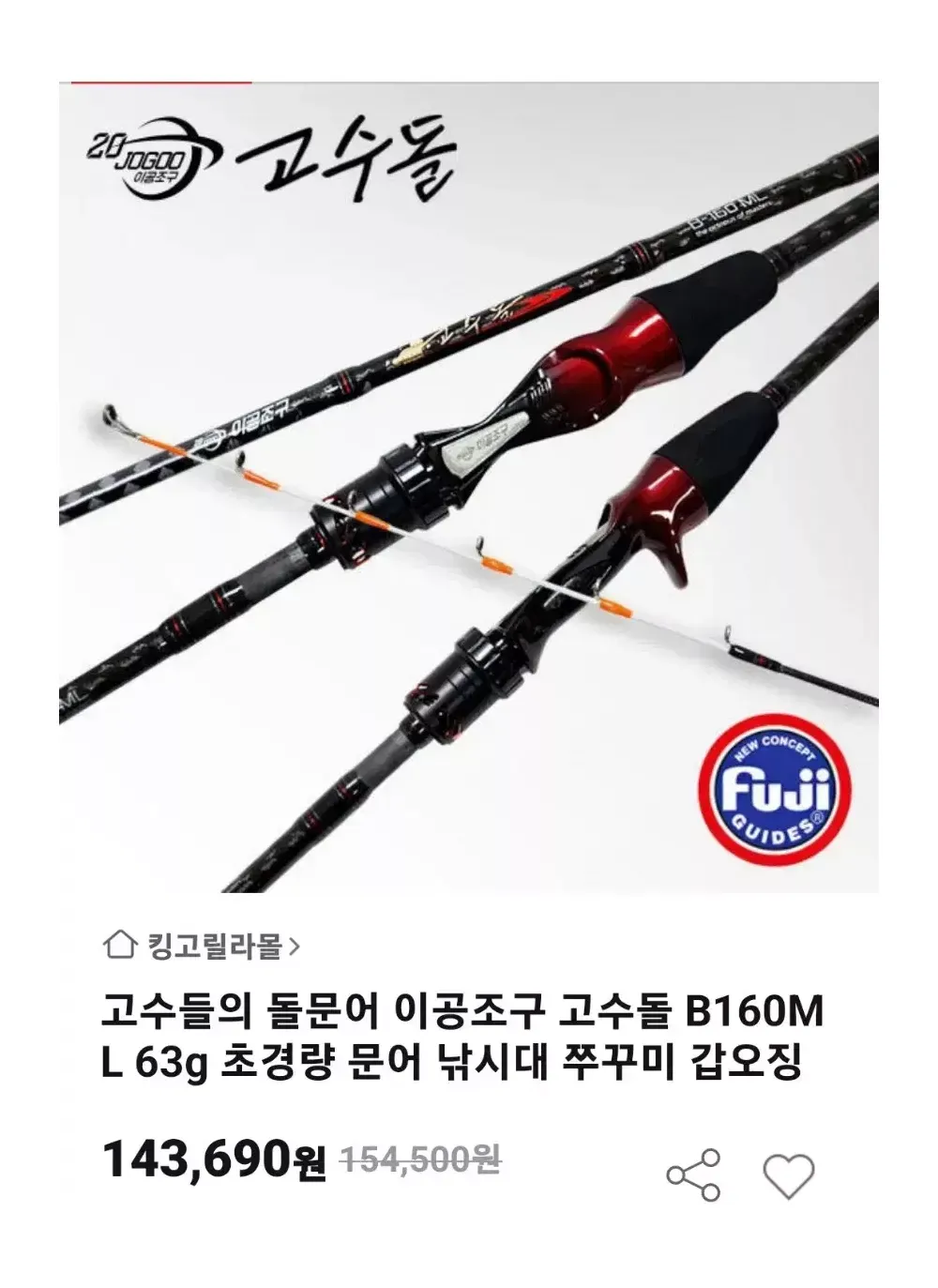 쭈갑로드63g 무상as OK 63g기준 추부하50호 까지☆ 티탄톱 티타늄솔리드 길이160 배송비포함95000