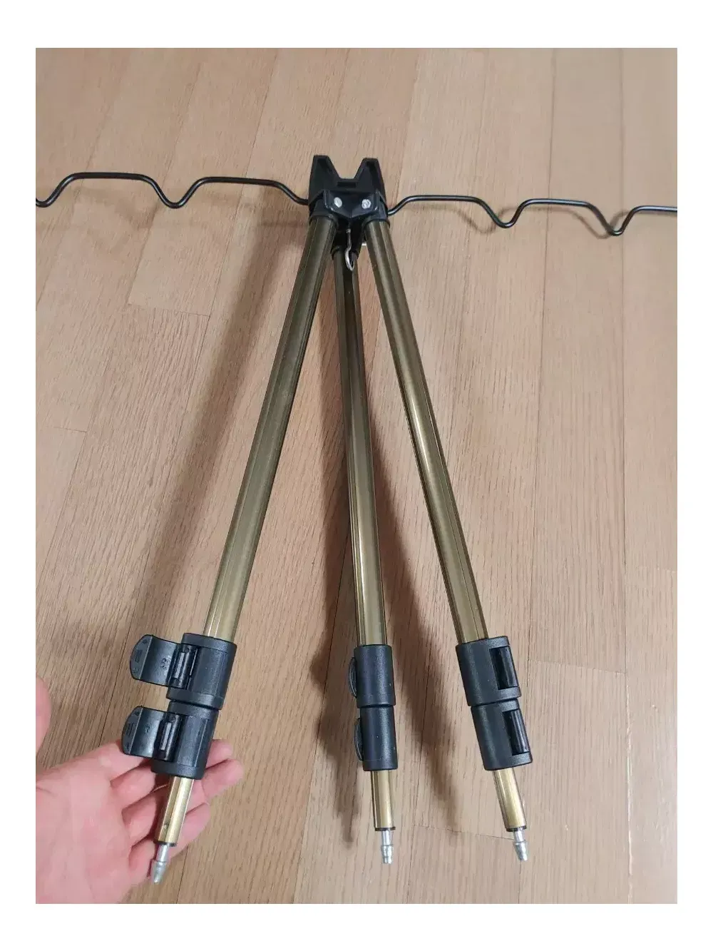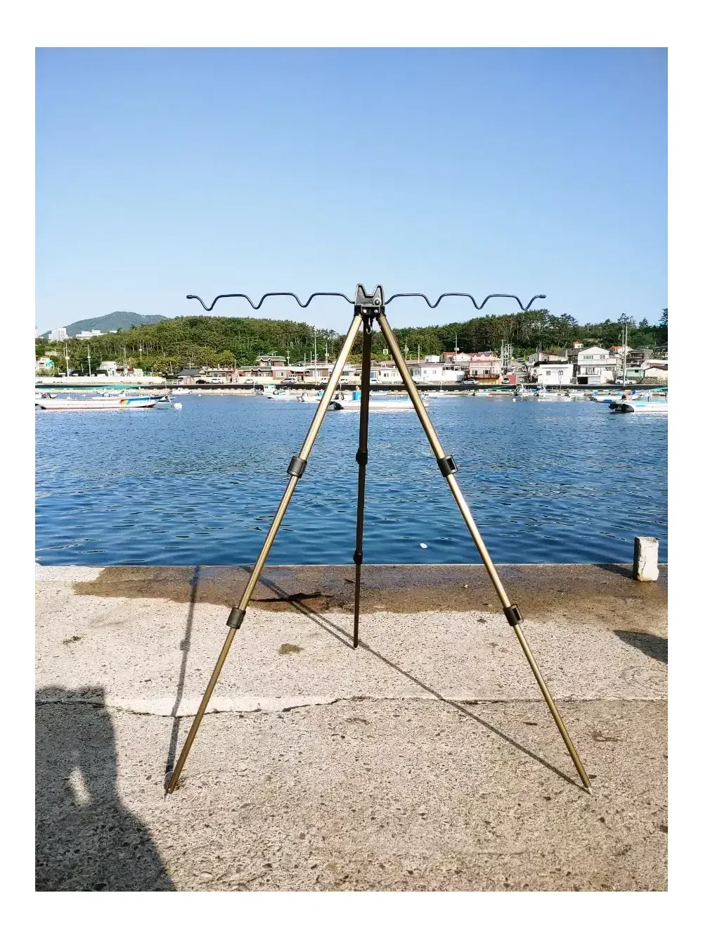 고급 3단 거치대+물통걸이 같이 드립니다 (둘다 새거입니다) 바닥에 낚시대 놓고 사용하시면 낚시대, 릴, 기스 다나고 허리도 계속 숙여야 하고 채비할때도 엄청 불편합니다 거치대 있으면 낚시할때, 낚시대 거치할 수 있어서 엄청 편합니다, 허리도 숙익일 거의 없습니다 낚시대 7대 거치가능하고, 3단 펼치면 110cm로 길어집니다 다리 연결부위 쉽게 조작할 수 있고, 금속재질이라 아주 튼튼하고 견고합니다 거치대 균형잡을수 있게 물통걸이 같이 드립니다 물통걸이에 생수통 달아서 거치대 아래에 매달아 놓으면 무게추 역할 하기에 아무리 바람 세게 불어도 쓰러지지않습니다 (거치대 무게추 따로 구매하려면 2만원정도 합니다) 보통 거치대 아래에 두레박 걸어 놓는데, 물통걸이 하나로 편하게 거치대 무게 균형 잡을수 있습니다