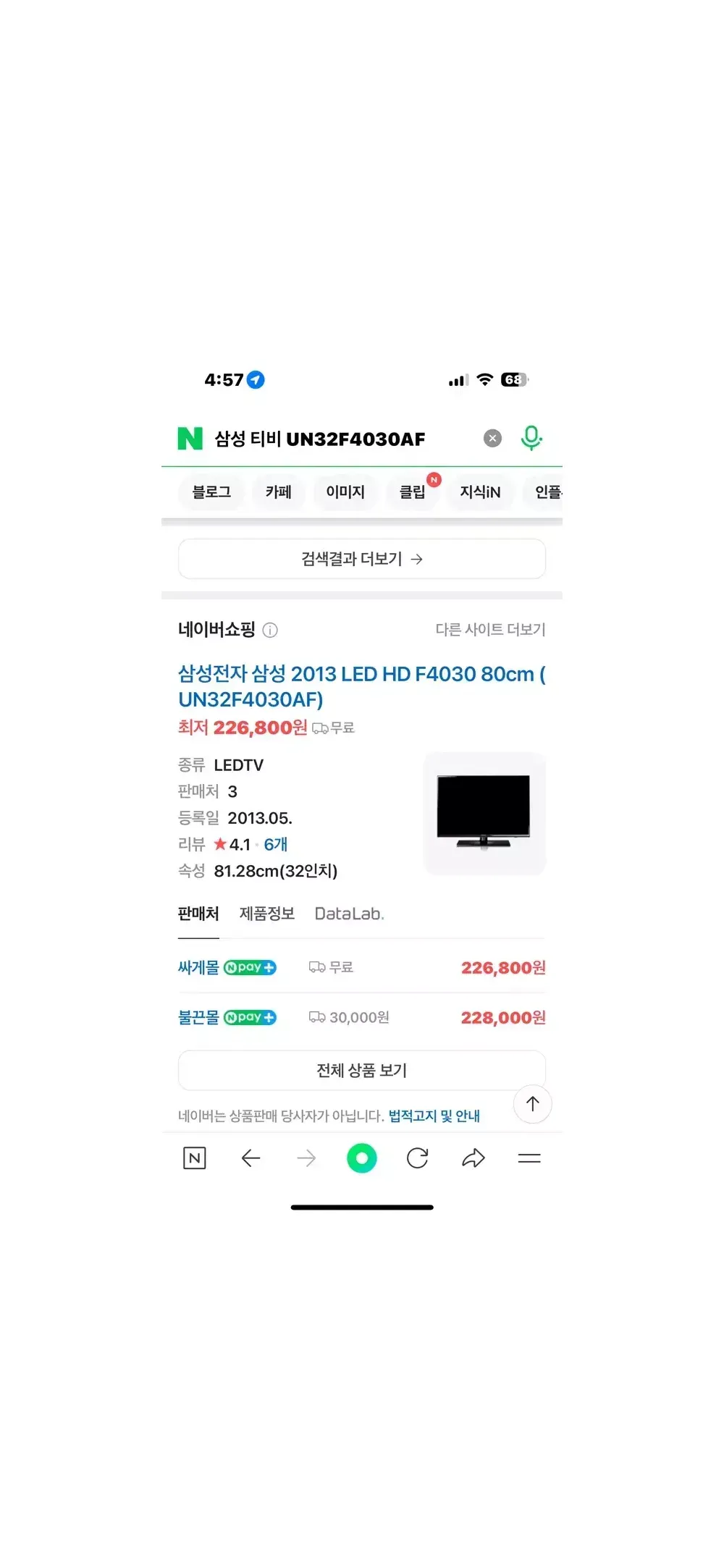 삼성전자 32인치 LED TV 모니터 (UN32F4030AF) 요약정보 및 구매