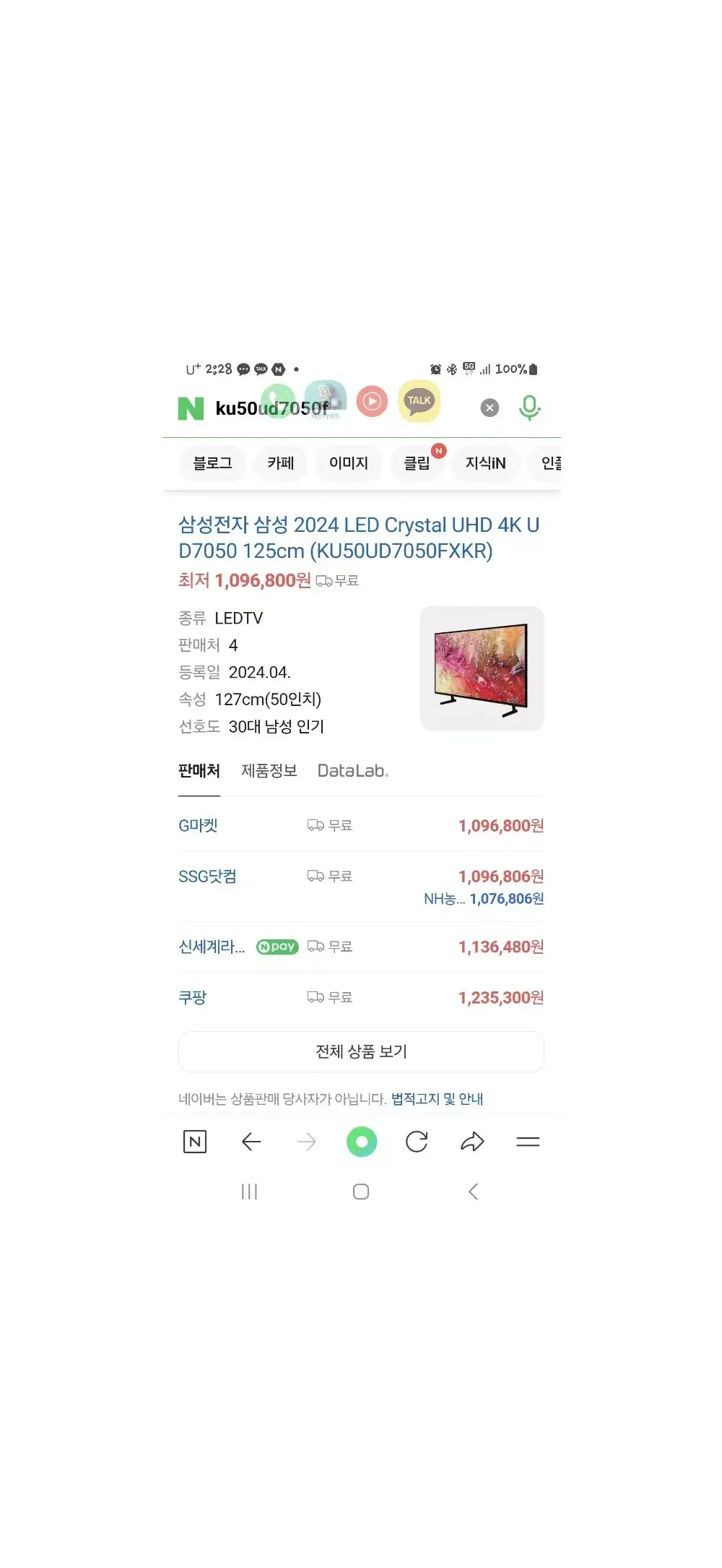 삼성티비 50인치 24년 7월 제품 > 영상가전