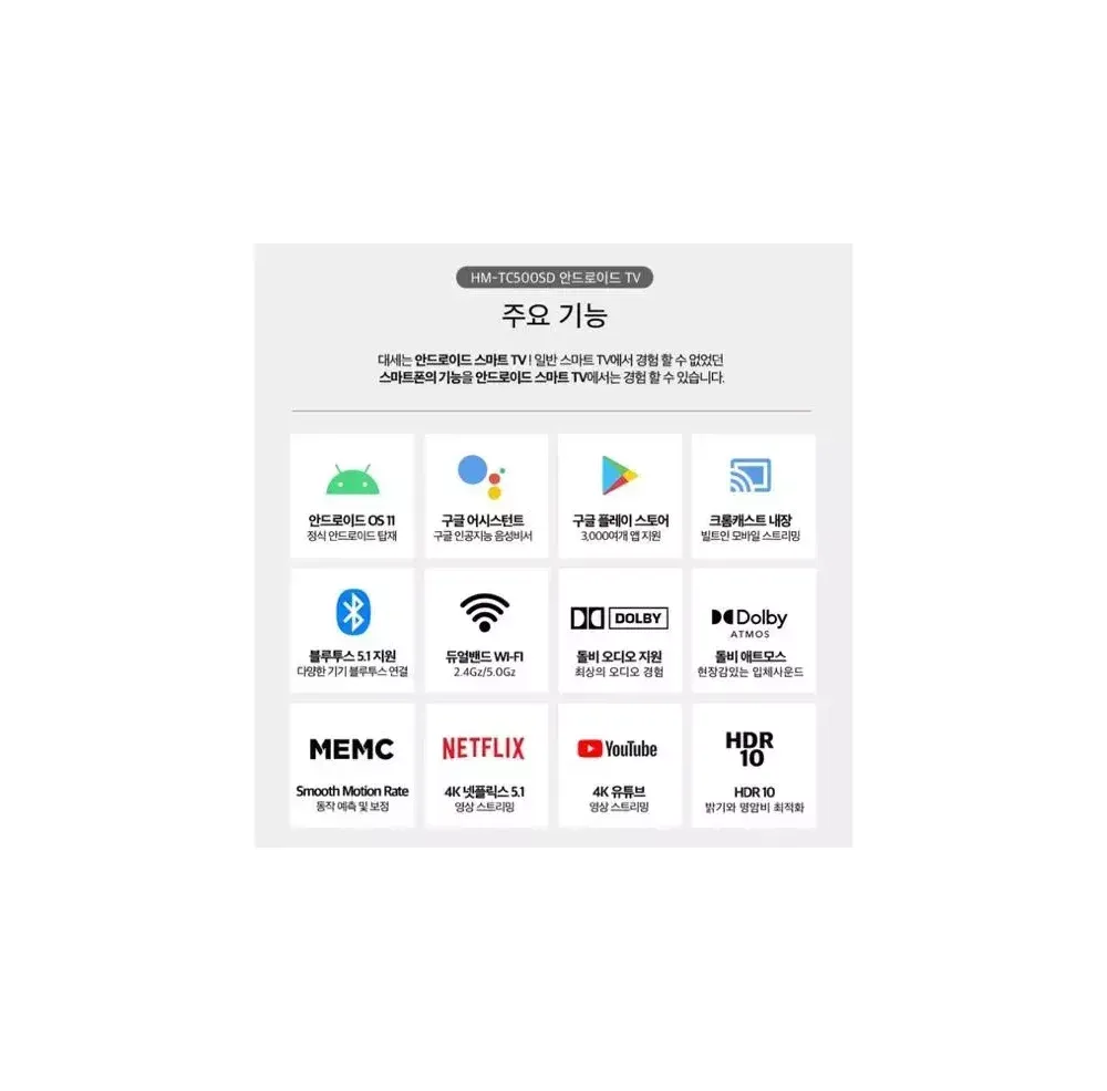 50인치 TV판매(HM-TC500SD) 넷플릭스, 유튜브 호환 요약정보 및 구매
