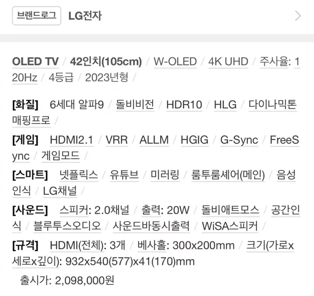 올해 6월에 구입한 따끈따끈한 티비 입니다 주말에 게임 하려고 샀는데 시간 없어서 처분 합니다. 연락 주세요 모델명: OLED42C3ENA