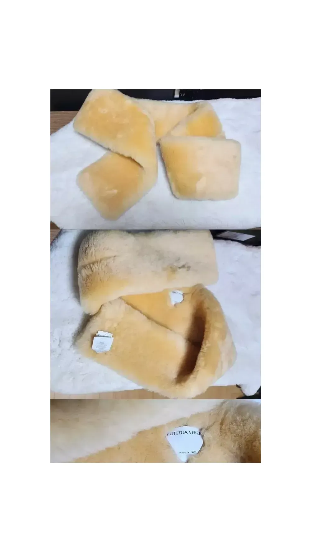 1,685,000원제품 보테가시그니처 택 한글택 국내백화점상품 시어링 리얼양털 머플러입니다 아무읏이나 잘어울리는 색상이며 리얼 양털로 고급스럽습니다 보테가에서 가공하여 살에닿는면이 정말 부드럽고 가볍고 따뜻합니다 완전 새상품이며 포장지 쇼핑백 구성품 다 있습니다 머플러같은경우 남이하던제품은 좀 그렇죠 예민하신분 환영입니다 전체 품절로 거의구매가어려운제품임에도 가격도 온라인보다 저렴하게 올렸습니다