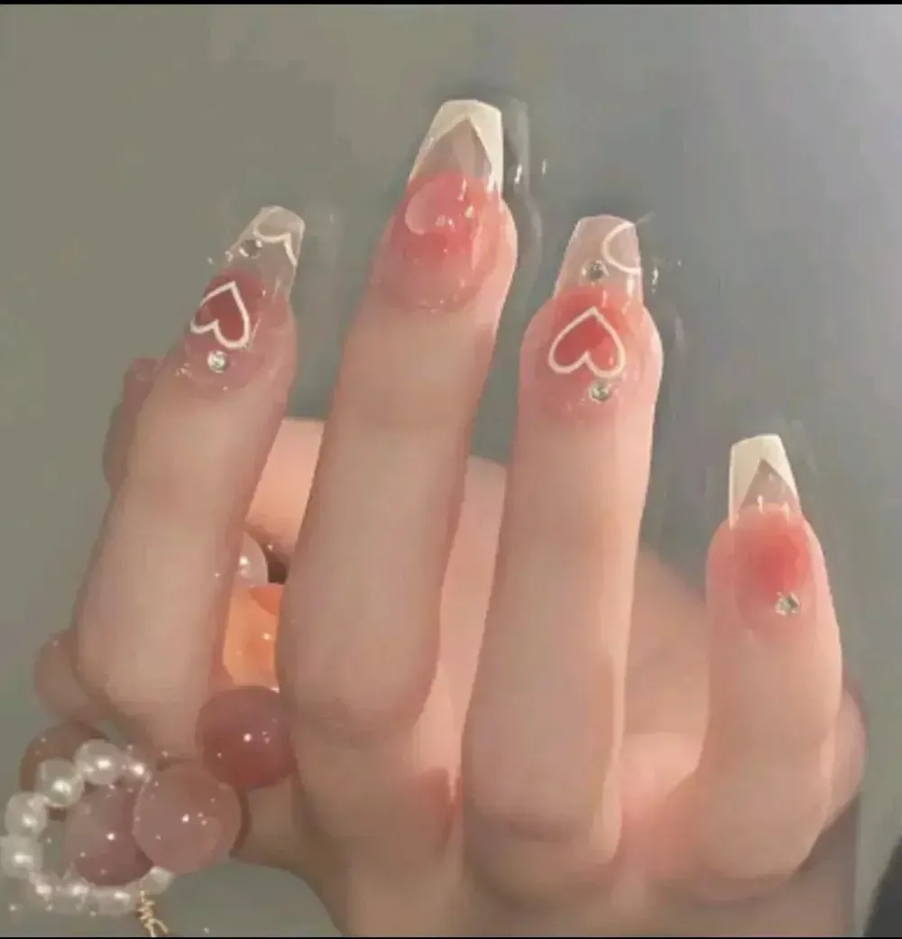 • 빠른배송! 하트 핑크 프랑스 네일팁