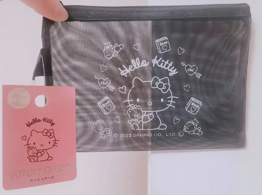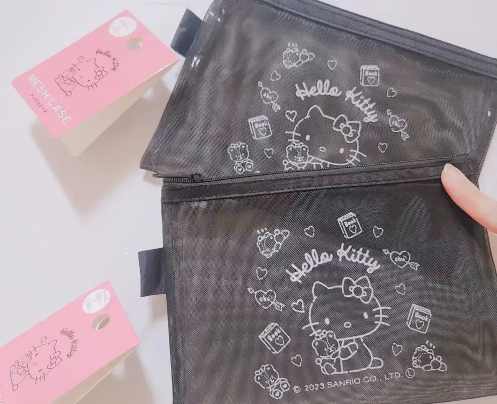 일본 산리오 키티 매쉬 파우치 블랙 파우치 화장품 케이스 (재고 3개) > 뷰티