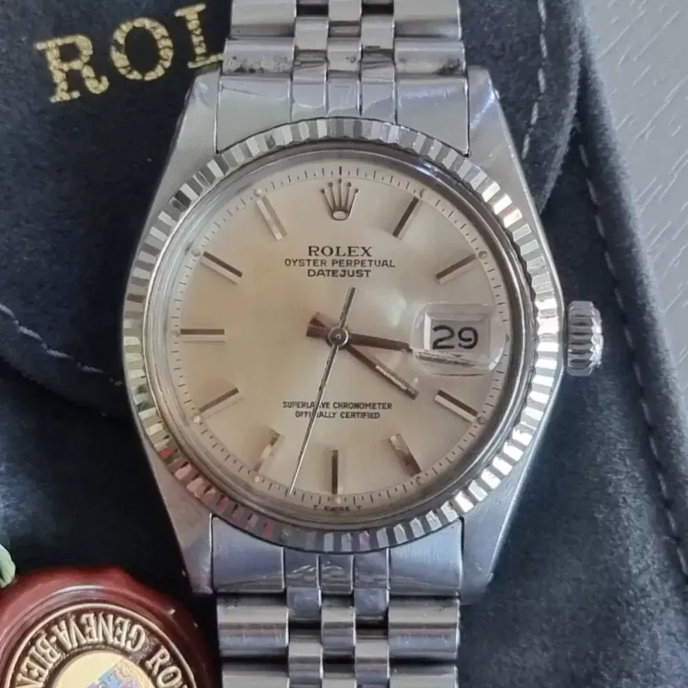 로렉스 1601 후기형 입니다 후기형은 용두빼면 초침이 멈추는 핵기능이 있습니다 내부 부속바뀌거나 손댄곳하나없는 순정으로 시간잘맞고 밴드넉넉합니다(22풀코) 다이얼 색갈바꿔 가격가지고 장난안침니다 딱 받을금액만 받습니다 400만원입니다(파우치및 메달포함)