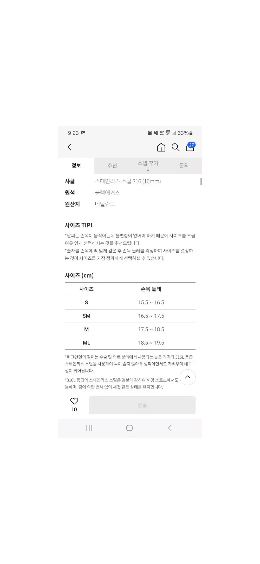 요번 연도 여름에 악세서리로 구매했는데, 태생이 이런거를 귀찮아해서 잘 안 끼게 되네요.. 실착 10회. 사이즈 M / 색상 블랙 얼른 챙겨가세요~