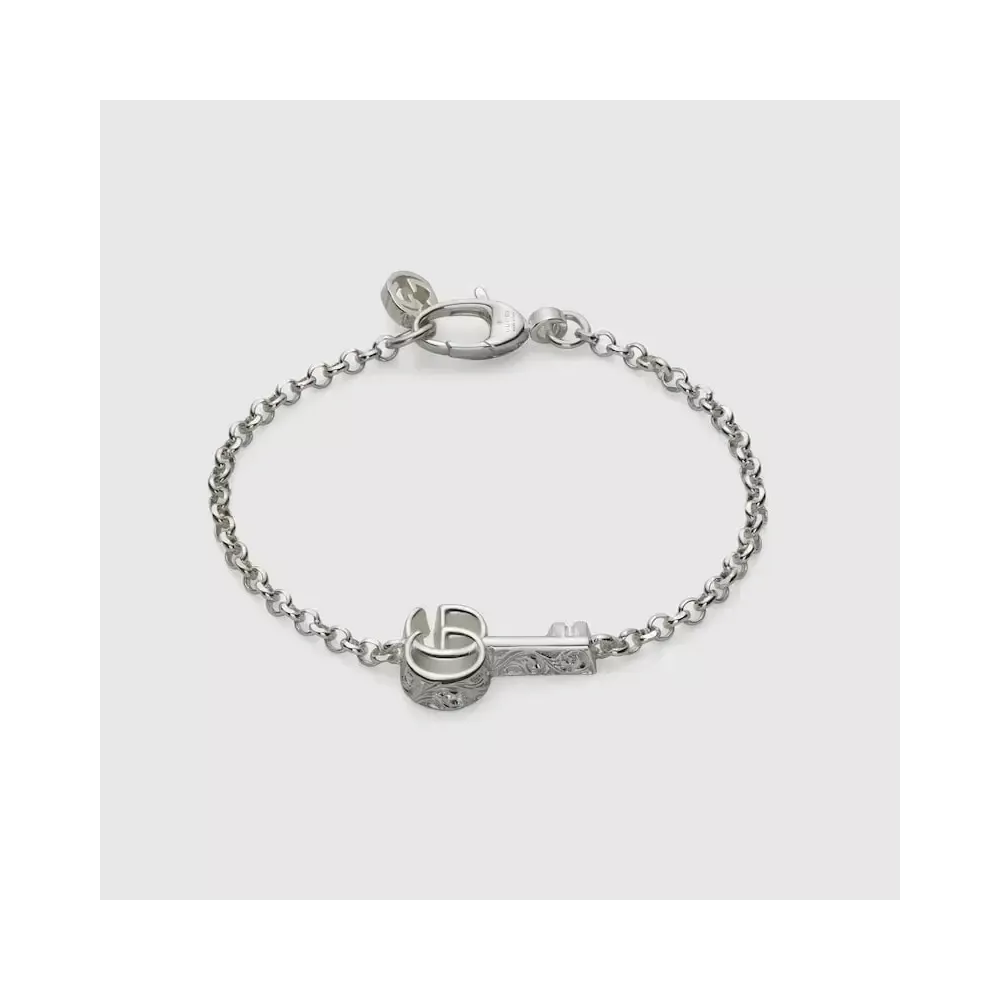 구찌 925스털링 실버 GG 마몽 키 참 팔찌로 새상품입니다. 열어서 상품 확인 밖에 하지 않았습니다. 너무 비슷한 팔찌를 선물받아서 이건 내놓습니다. 2024년 7월 초 구입한 상품입니다. 여름에 포인트 팔찌로 그만이네요.