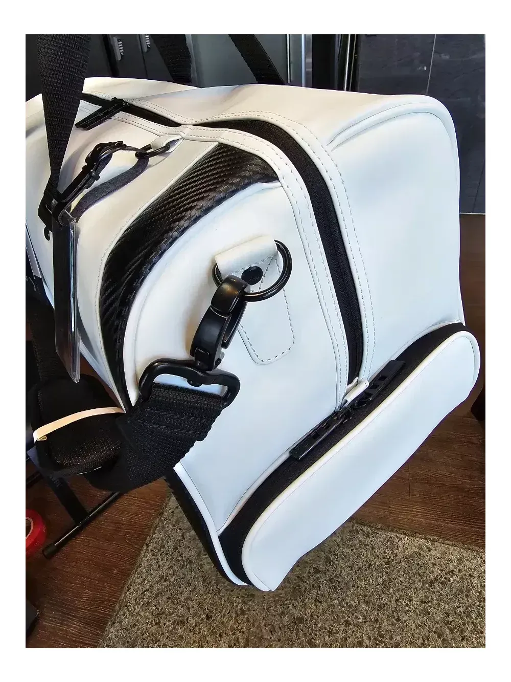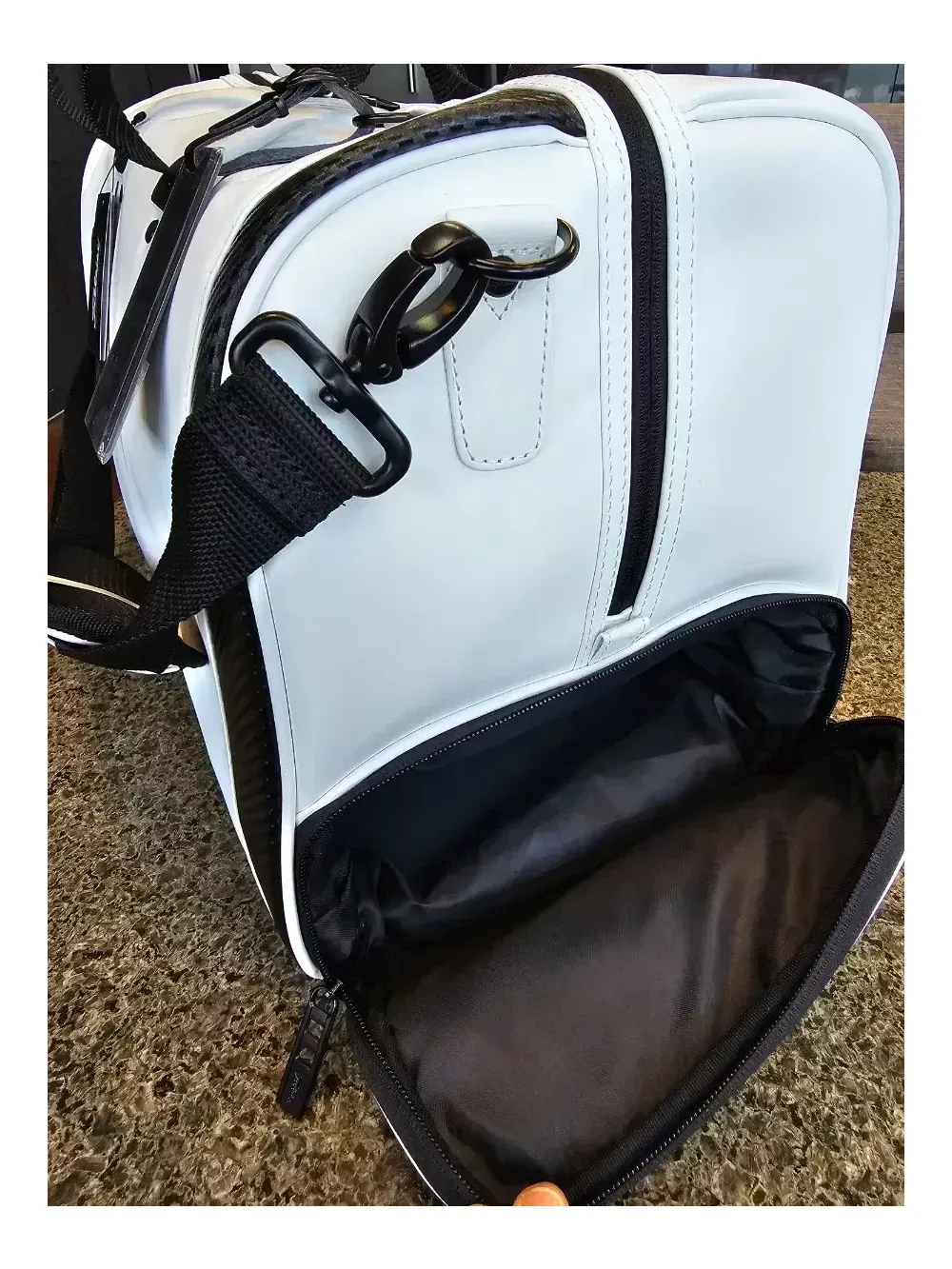 타이틀리스트 코어에센셜 보스턴백 TA22CEBBK. 화이트색상 병행수입 일본정품. 텍 제거상태 타이틀리스트 세계에서 가장 많이 팔린 보스턴, 코어에센셜 24년 신형입니다. 최저가이며, 온라인에서 이 가격 이하로 판매하는 상품은 대부분 가품입니다. 정품은 중량 50KG 바벨테스트 기준을 통과해 내구성에서 가품과는 큰 차이가 있습니다. 크기 : W49 × D25 × H30.5cm 소재 : PU레더 품번 : TA22CEBBK 안전결제하세요. 질문에 답변하지 않습니다. 내부 망사포켓2구, 지퍼포켓 1구로 구성돼 있습니다. 측면 골프화 포켓 당연히 있습니다.