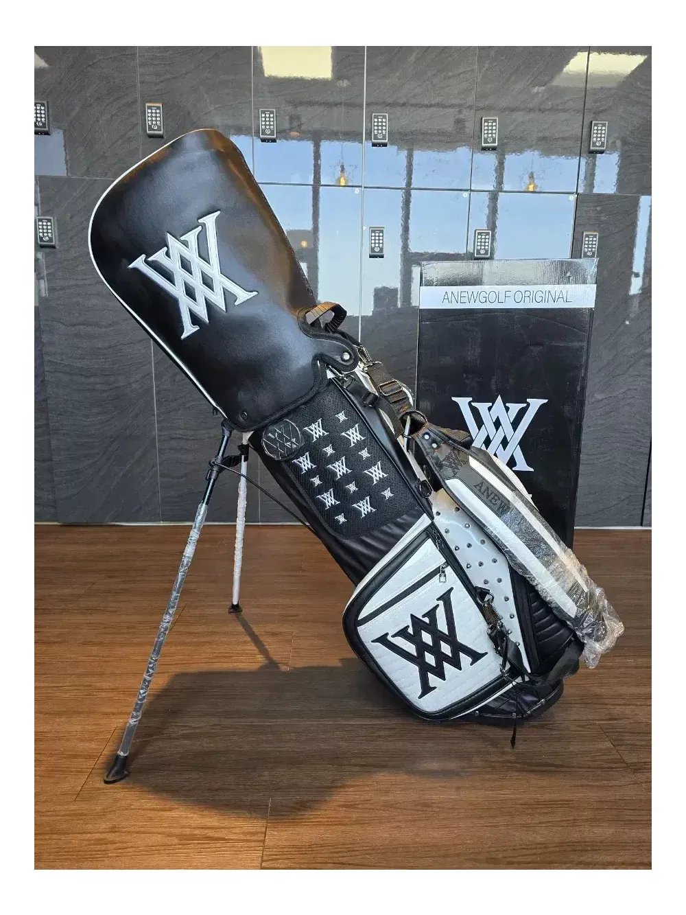 어뉴 헤이븐 스탠드 골프백 일본정품. 병행수입. 새상품. 오프라인매장, 로드매장 등에 전시했던 진열삼품으로, 철저한 관리로 새상품과 다르지 않습니다. 어뉴공홈에서는 판매가 77만8천원에 판매되고 있습니다. 안전결제로 통상 오후2시 이전에 결제하시면 1~2일이면 받아보실 수 있습니다. 헤이븐은 투컬러 스탠드백의 후속모델로 천 직조가 아닌 합성가죽 등의 재질로 더욱 고급스럽습니다. 중량은 6kg대이며, 아주 튼튼하고 렉은 부드럽습니다. 특히, 렉도 블랙과 화이트로 2가지 컬러로 조화를 이룬 것이 특징입니다. 본품 외에 후드커버, 투명후드커버, X자 어깨끈, 일자 어깨끈, 아크릴 네임텍이 있습니다.