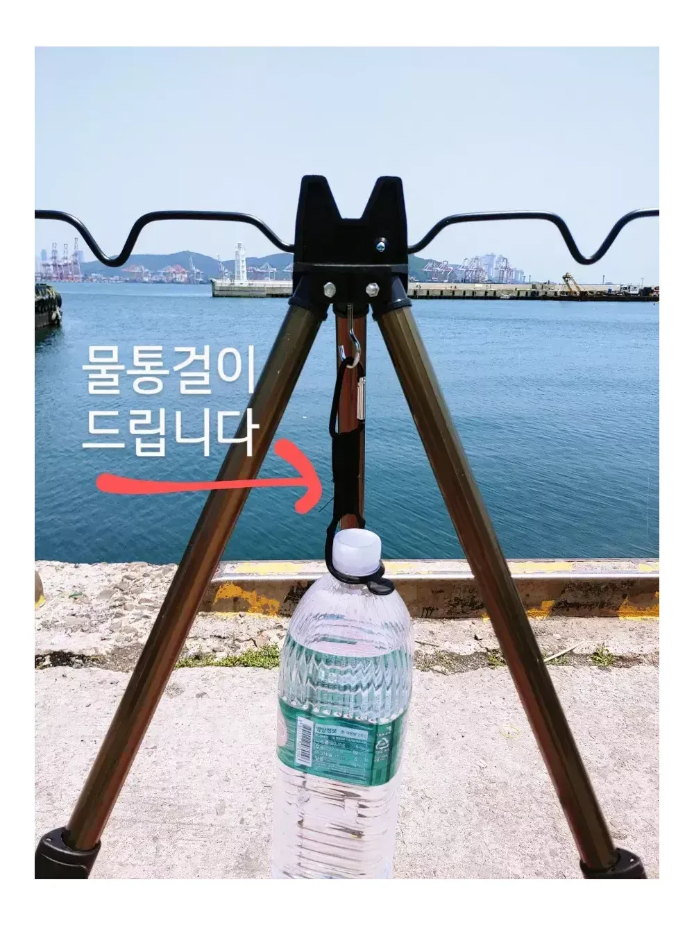 고급 3단 거치대+물통걸이 같이 드립니다 (둘다 새거입니다) 바닥에 낚시대 놓고 사용하시면 낚시대, 릴, 기스 다나고 허리도 계속 숙여야 하고 채비할때도 엄청 불편합니다 거치대 있으면 낚시할때, 낚시대 거치할 수 있어서 엄청 편합니다, 허리도 숙익일 거의 없습니다 낚시대 7대 거치가능하고, 3단 펼치면 110cm로 길어집니다 다리 연결부위 쉽게 조작할 수 있고, 금속재질이라 아주 튼튼하고 견고합니다 거치대 균형잡을수 있게 물통걸이 같이 드립니다 물통걸이에 생수통 달아서 거치대 아래에 매달아 놓으면 무게추 역할 하기에 아무리 바람 세게 불어도 쓰러지지않습니다 (거치대 무게추 따로 구매하려면 2만원정도 합니다) 보통 거치대 아래에 두레박 걸어 놓는데, 물통걸이 하나로 편하게 거치대 무게 균형 잡을수 있습니다