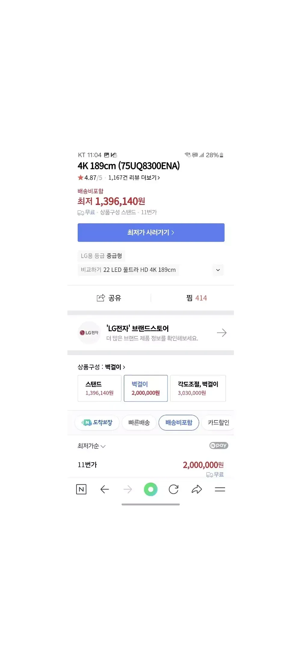 상품명 : 75UQ8300ENA 지역 : 인천광역시 남동구 간석동 구매시기 : 2023.04 판매금액 : 110만(배송비 미포함) 현재 최저가 : 200만 하자여부 : 일절 하자 없습니다. *배송비는 구매자 부담 그 외 궁금한 점은 연락주시면 답장드리겠습니다.